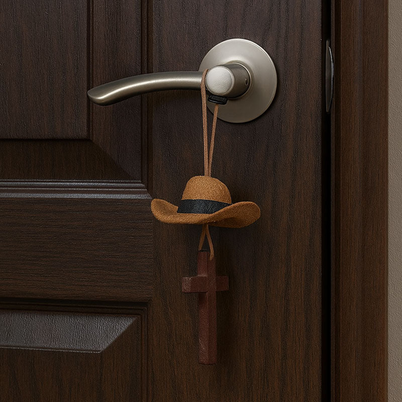 Looking to add a little personality to your daily drive?This Handcrafted Cowboy Hat & Cross Ornament swings gently as you drive, adding a touch of rustic charm.🐎
