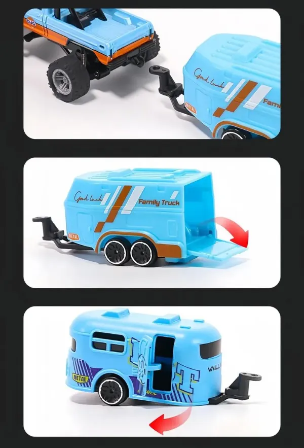 💪Powerful Performance with Tow Functionality: Featuring a high-torque motor and a functional tail hook, this car can tow small items like RV trunks for added playtime possibilities.