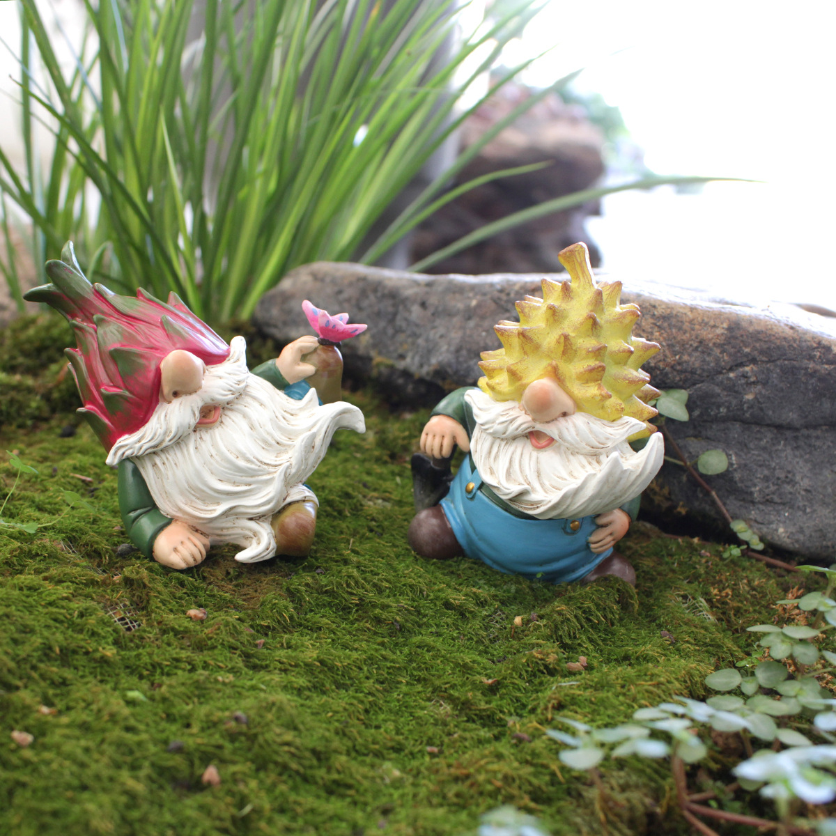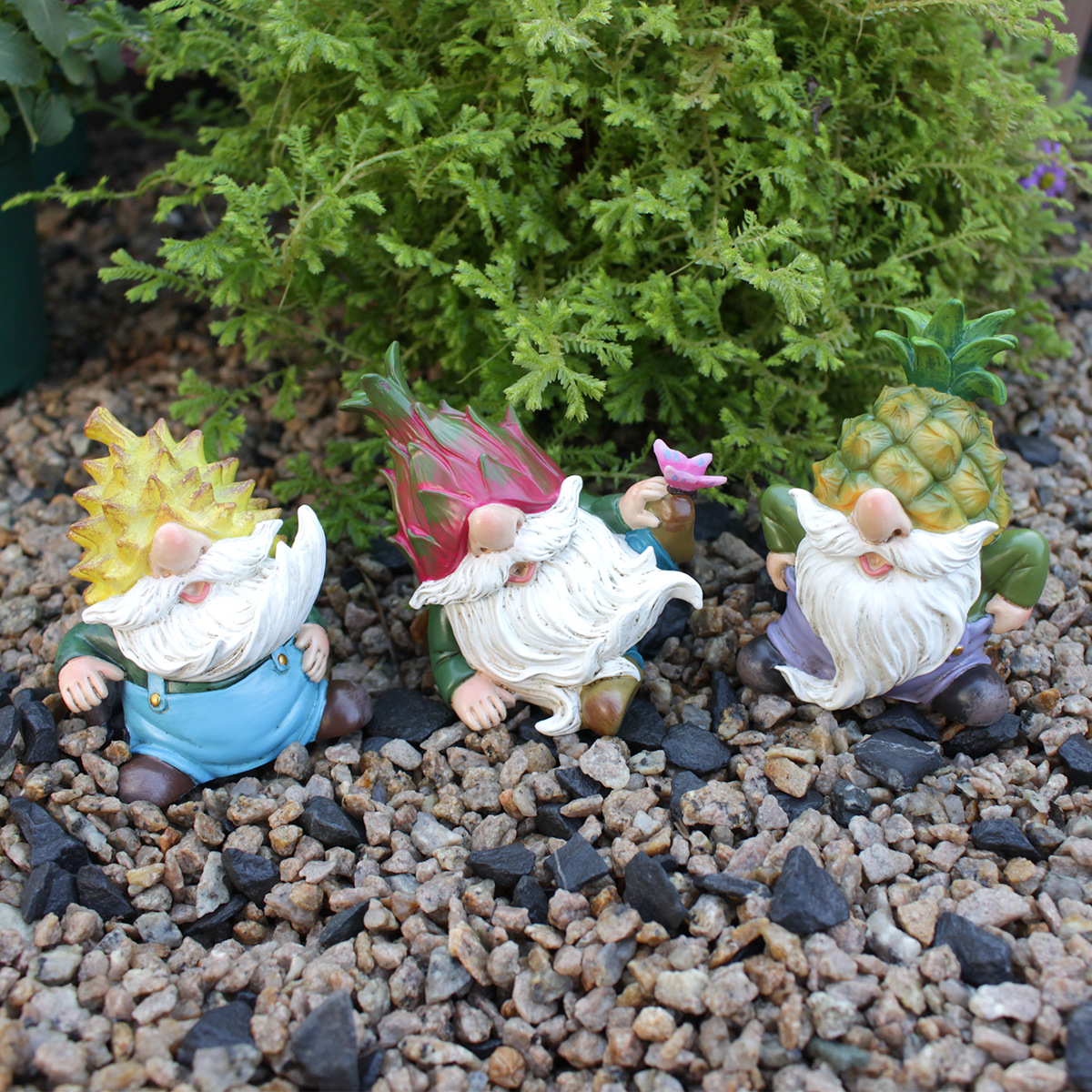 • The charm of traditional garden gnomes with the vibrant personality of tropical fruits — Durian, Pineapple, and Dragon Fruit. Each one is a playful character waiting to liven up your space.